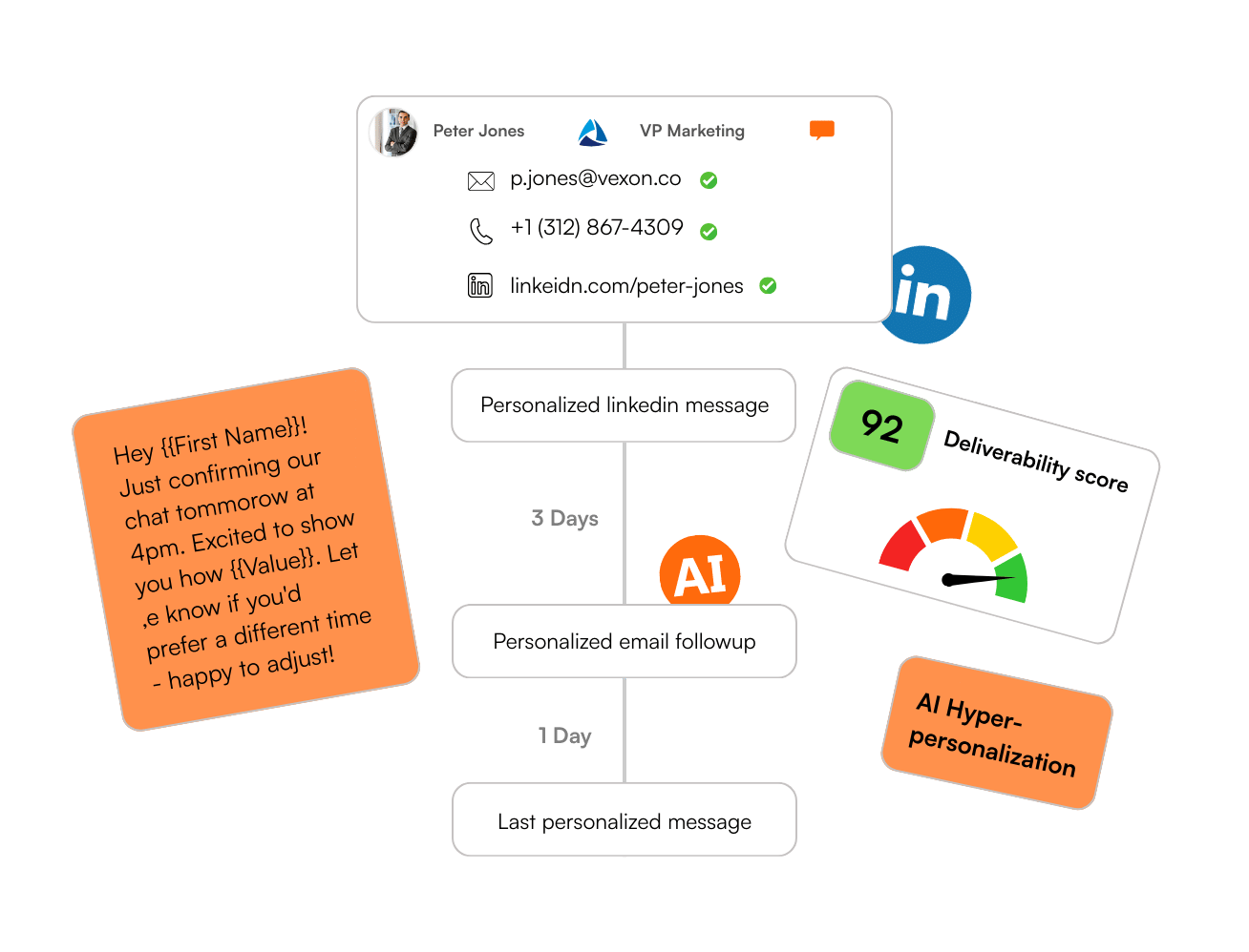 Namiesto generických šablón dostanete správy na mieru. Regardino ich automaticky vytvorí a doručí na Linkedin a Email - aby vaše kampane prinášali reálne výsledky.
